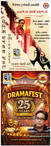 Venue: Houston Durgabari Society Auditorium Time: 5/22/26 5:00 pm - 5/24/26 8:45 pm Hosted By: Houston Durgabari Society