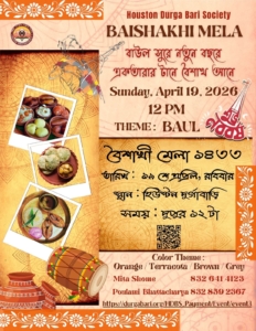 Venue: Houston Durgabari Date: Saturday, May 25 - Sunday, May 26; Saturday Time: 4:30 pm - 11:30 pm; Sunday Time: