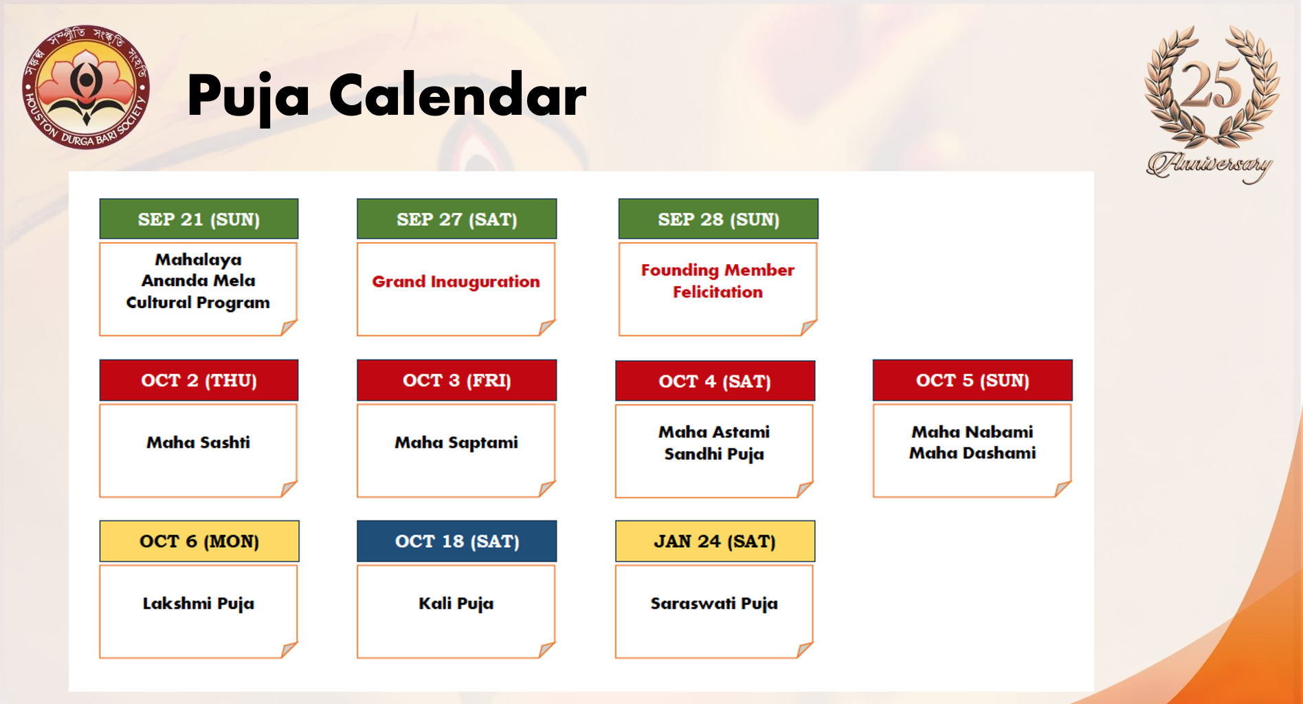 | Puja Schedule and Timings | ||